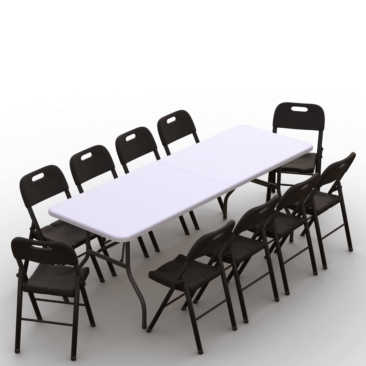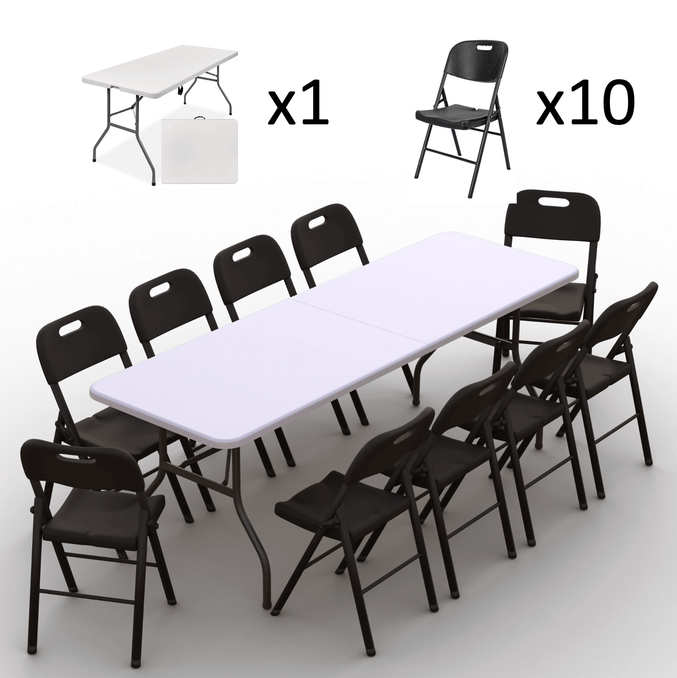 Zestaw cateringowy ogrodowy – stół 240 biały, 10 krzeseł Premium czarne