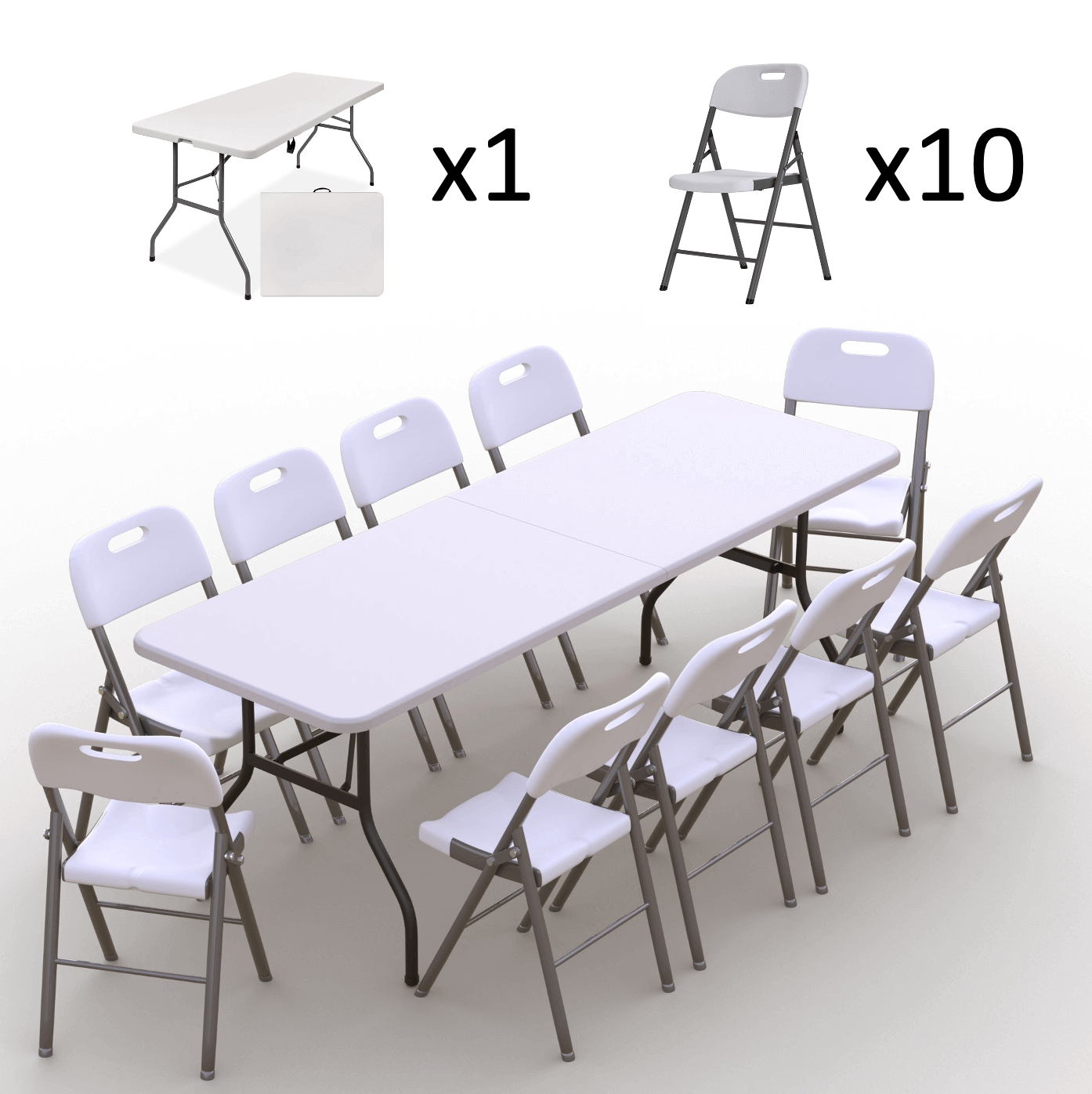 Zestaw cateringowy ogrodowy – stół 240 biały, 10 krzeseł Premium białe