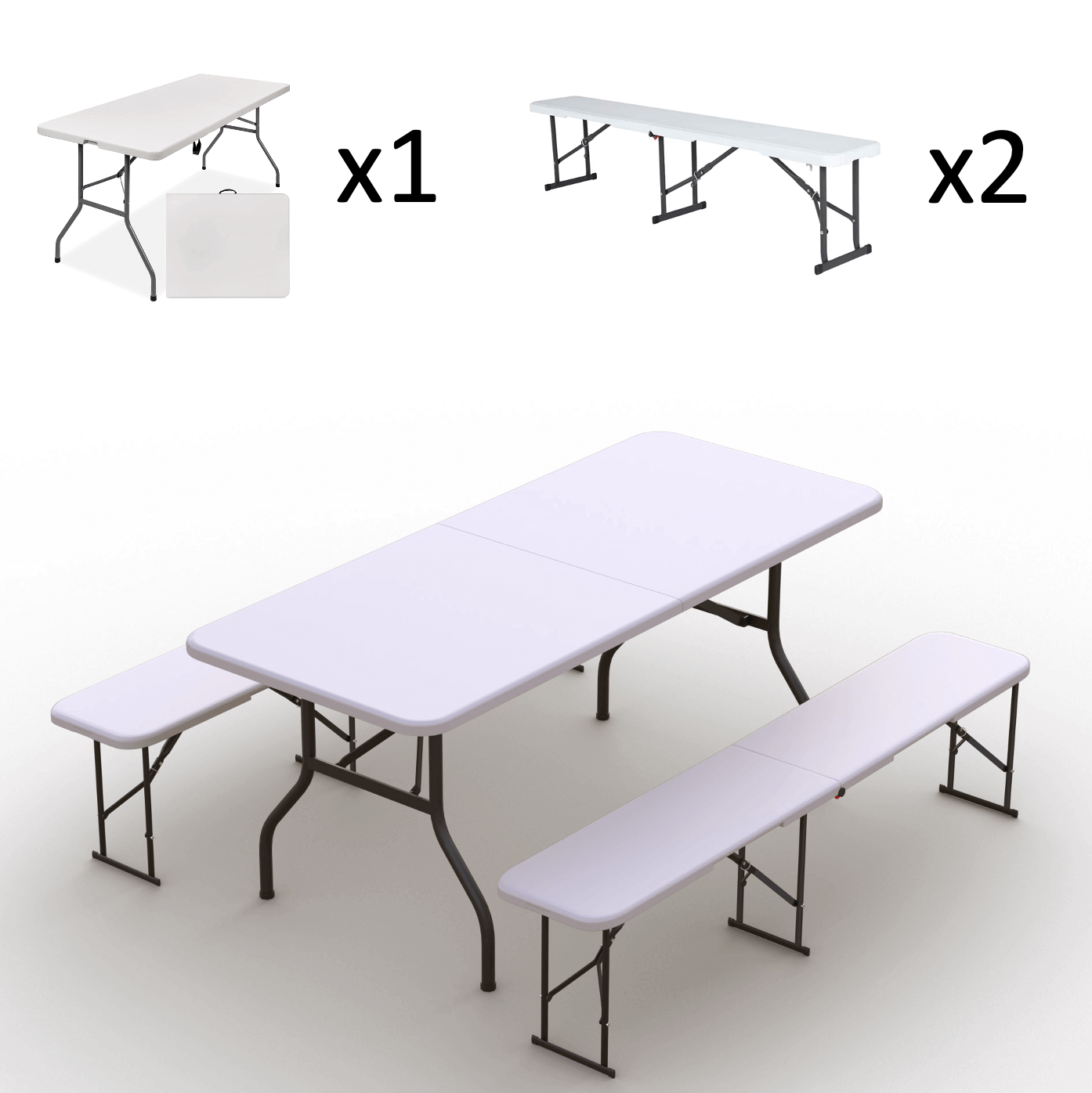 Zestaw cateringowy ogrodowy – stół 180 biały, 2 ławki białe