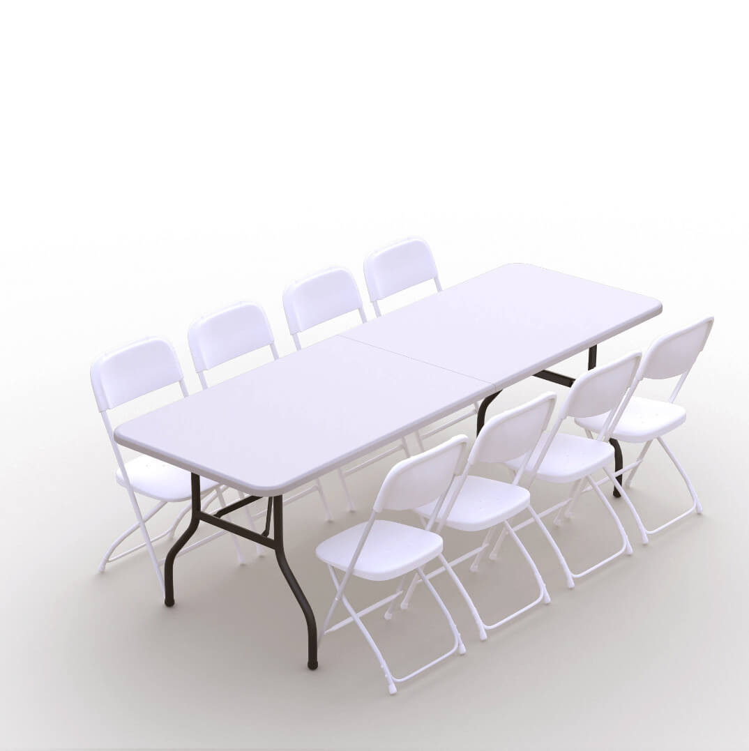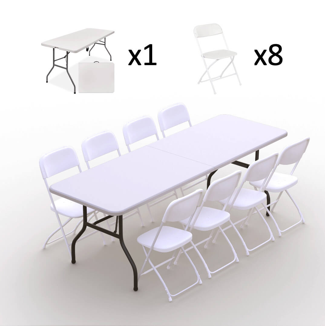 Zestaw cateringowy ogrodowy – stół 240 biały, 8 krzeseł Europa białe