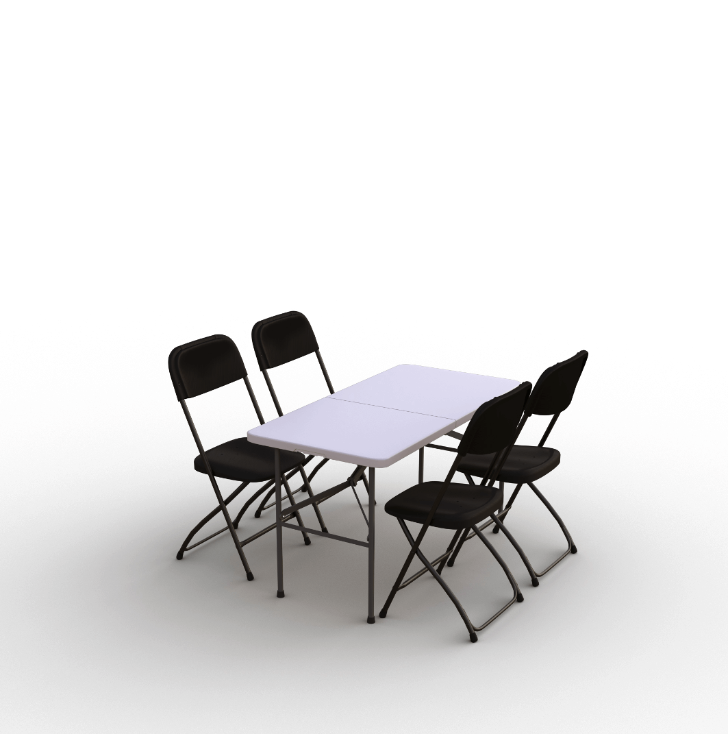 - 1x składany stół plastikowy 120 cm