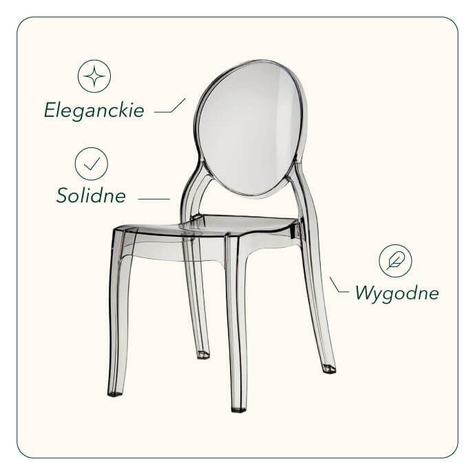 Przezroczyste krzesła Chiavari/Queen to oryginalne i innowacyjne rozwiązanie do Twojego otoczenia. Krzesła te charakteryzują się wyjątkowym przezroczystym designem, luksusowym kształtem, wygodą i są wykonane z niezwykle trwałego poliwęglanu. Ten typ krzeseł dobrze komponuje się zarówno ze stylem klasycznym, jak i nowoczesnym, dlatego cieszy się popularnością na weselach, chrzcinach i oficjalnych wydarzeniach. Dają wrażenie lekkości i nie obciążają przestrzeni, co jest jednym z powodów, dla których ten typ staje się coraz bardziej popularny we wnętrzach domowych, zwłaszcza tych o małej powierzchni.