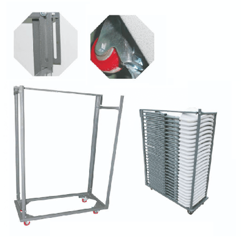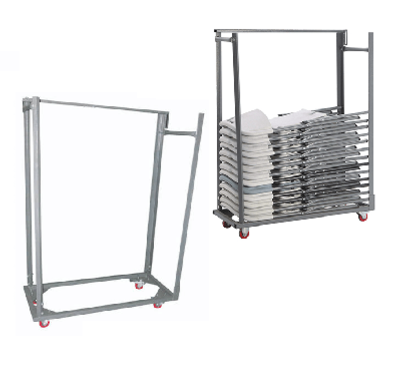 Wózek do krzeseł składanych z którym transport krzeseł z jednego miejsca do drugiego będzie jeszcze łatwiejszy. Warto również wspomnieć, że przechowując składane krzesła na tym wózku, zaoszczędzisz sporo miejsca. Wózek do krzeseł jest solidny, wykonany z grubej stali.