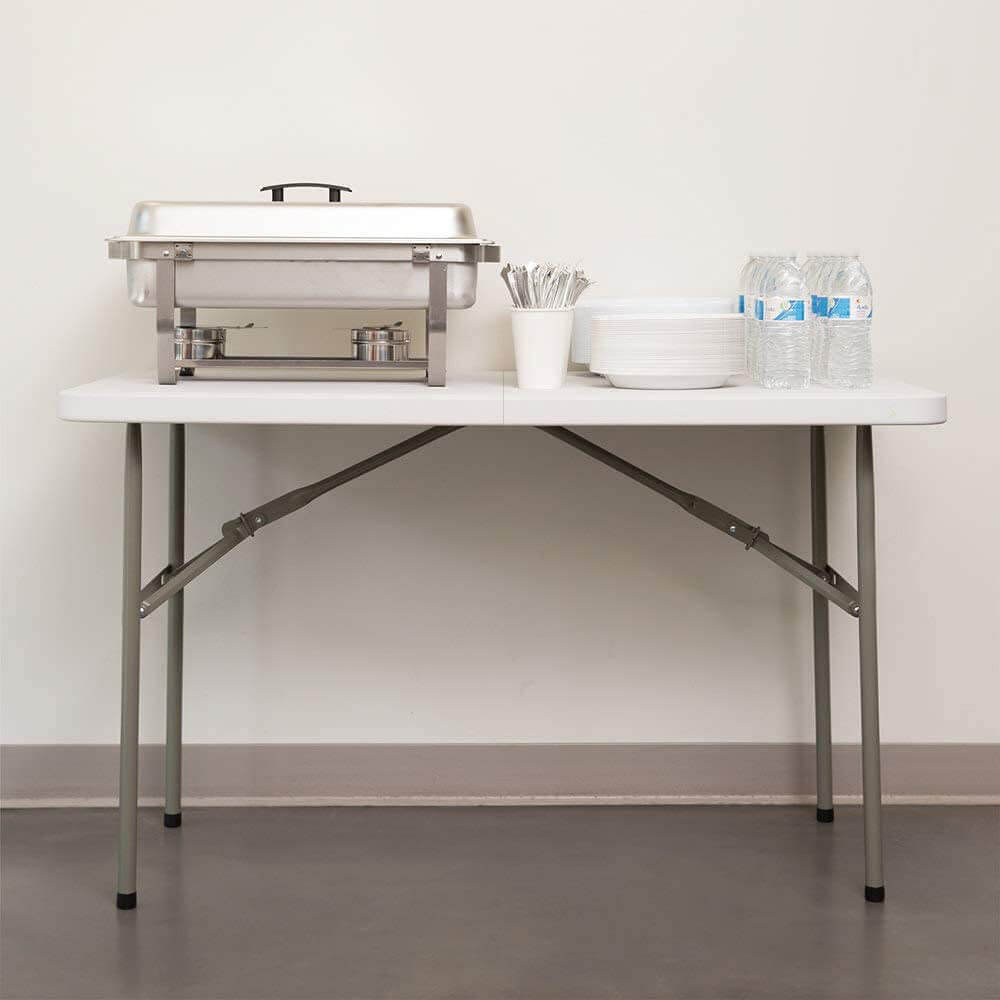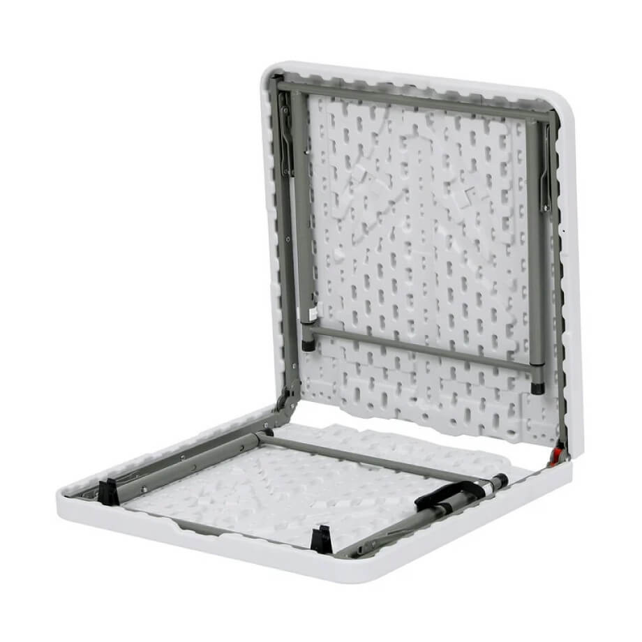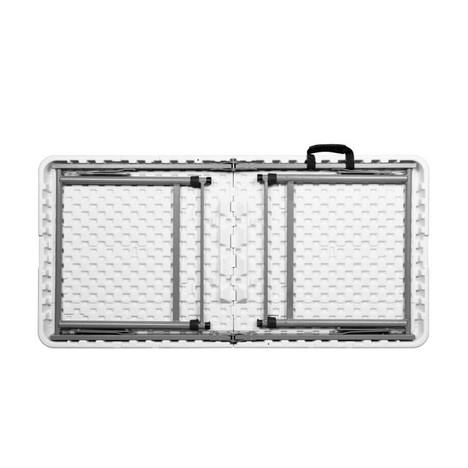 Składany plastikowy stół jest bardzo popularny ze względu na swoją niską wagę i bardzo kompaktowe wymiary po złożeniu. Nogi stołu posiadają specjalne zabezpieczenia, dzięki którym nie rysują podłogi. Stół ten jest bardzo łatwy do transportu z miejsca na miejsce i nie wymaga wiele miejsca do przechowywania. Stół posiada uchwyt do przenoszenia zamontowany po wewnętrznej stronie stołu. Po złożeniu stołu, będzie go można wygodnie przenosić w ręku. Z tych powodów ten składany stół cieszy się dużą popularnością podczas organizacji przyjęć, ceremonii ślubnych, a także jest często wykorzystywany w restauracjach, na konferencjach, w hotelach, na eventach, w ogrodach lub po prostu na podwórkach przy domu.
