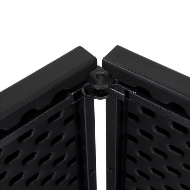 Ten stół został wykonany z certyfikowanych materiałów najwyższej jakości. Stół jest trwały i przeznaczony do częstego, profesjonalnego użytku. Blat plastikowego składanego stołu wykonany jest z polietylenu o wysokiej gęstości, jest trwały i odporny na różne warunki atmosferyczne, a także w 100% wodoodporny. Stelaż stołu wykonany jest ze stali malowanej proszkowo, dzięki czemu jest odporny na korozję. Stół wytrzymuje duże obciążenie jest odporny na promieniowanie UV. Kupując ten rozkładany stół, zyskasz niezawodny, solidny i trwały stół.