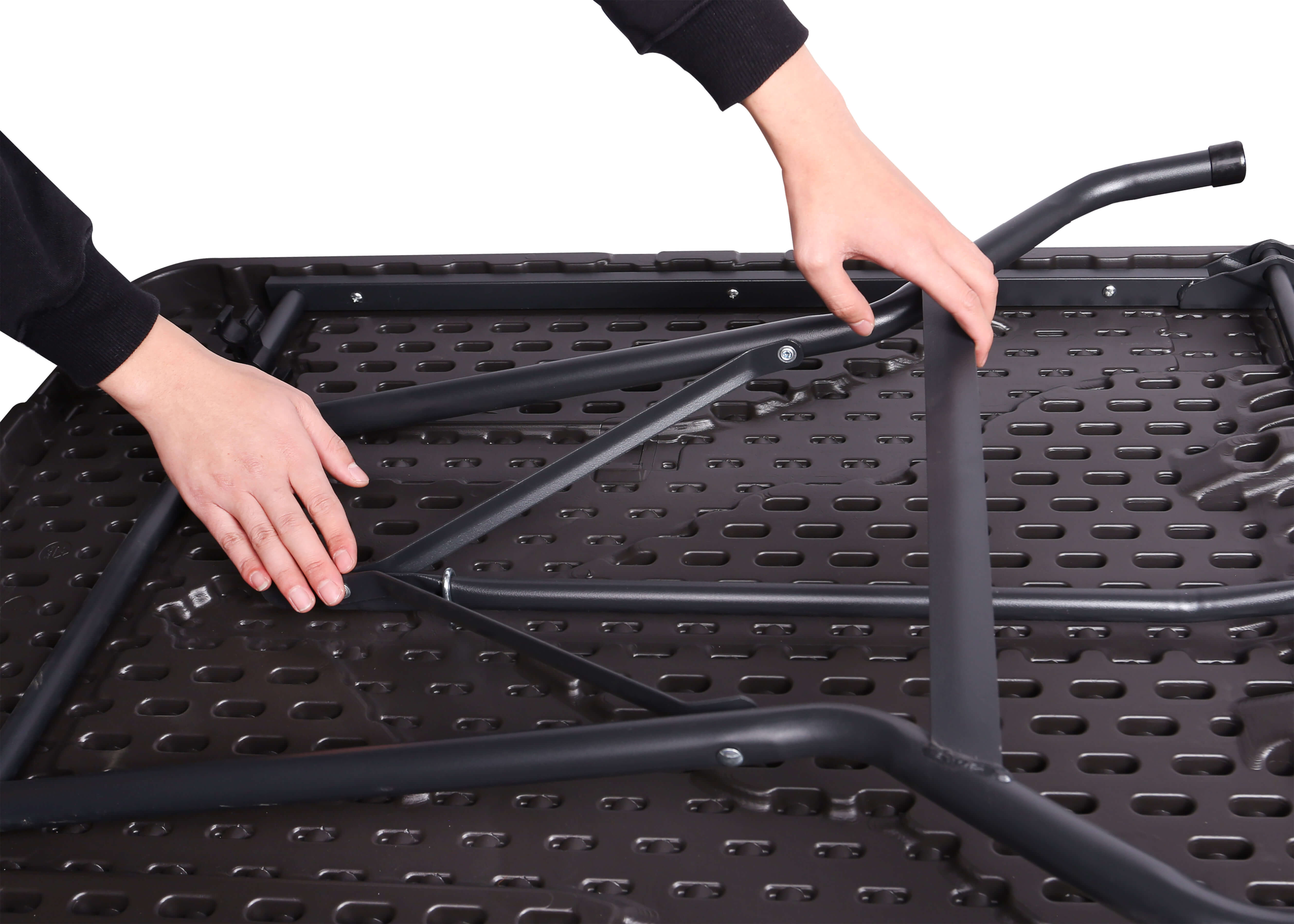 Ten stół został wykonany z certyfikowanych materiałów najwyższej jakości. Stół jest trwały i przeznaczony do częstego, profesjonalnego użytku. Blat plastikowego składanego stołu wykonany jest z polietylenu o wysokiej gęstości, jest trwały i odporny na różne warunki atmosferyczne, a także w 100% wodoodporny. Stelaż stołu wykonany jest ze stali malowanej proszkowo, dzięki czemu jest odporny na korozję. Stół wytrzymuje duże obciążenie jest odporny na promieniowanie UV. Kupując ten rozkładany stół, zyskasz niezawodny, solidny i trwały stół.