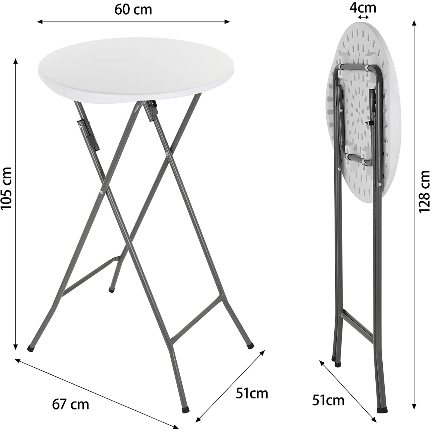 Składany plastikowy stolik barowy jest bardzo popularny ze względu na swoją niską wagę i bardzo kompaktowe wymiary po złożeniu. Nogi stolika posiadają specjalne zabezpieczenia, dzięki którym nie rysują podłogi. Stolik ten jest bardzo łatwy do transportu z miejsca na miejsce i nie wymaga wiele miejsca do przechowywania. Z tych powodów ten składany stolik barowy cieszy się dużą popularnością podczas organizacji przyjęć, ceremonii ślubnych, a także jest często wykorzystywany w restauracjach, konferencjach, hotelach i na eventach.