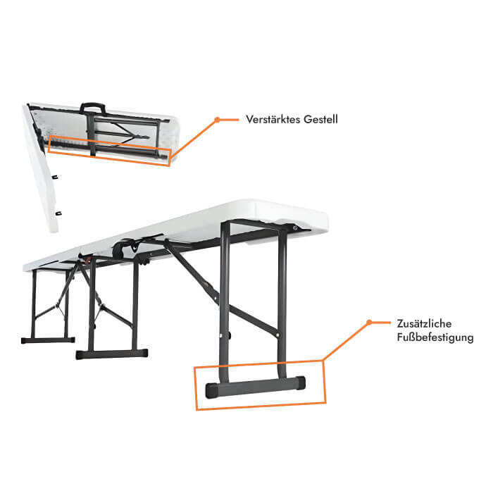 Składana plastikowa ławka jest bardzo popularna ze względu na swoją niską wagę i bardzo kompaktowe wymiary po złożeniu. Nogi ławki posiadają specjalne zabezpieczenia, dzięki którym nie rysują podłogi. Ławka ta jest bardzo łatwa do transportu z miejsca na miejsce i nie wymaga wiele miejsca do przechowywania. Ławka posiada uchwyt do przenoszenia zamontowany po wewnętrznej stronie ławki. Po złożeniu ławki, będzie ją można wygodnie przenosić w ręku. Z tych powodów ta składana ławka cieszy się dużą popularnością podczas organizacji przyjęć, a także jest często wykorzystywana na konferencjach, na eventach, w ogrodach lub po prostu na podwórkach przy domu.