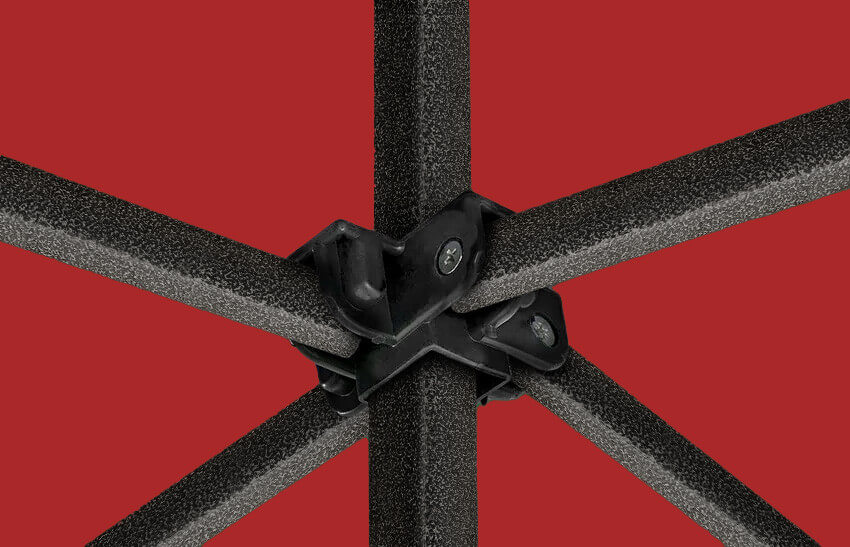 Pavillonkonstruktion Profile metalowe (30x30, 25x25, 23x12 mm), malowane przemysłowo farbą odporną na korozję. Profile łączone za pomocą mocnych plastikowych łączników