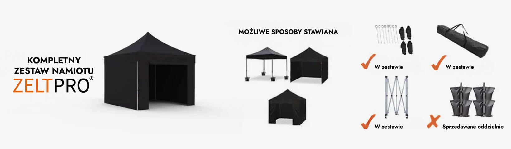 Namioty serii ZELTPRO PREMIUM+ przeznaczone są dla osób, które potrzebują maksymalnej niezawodności i trwałości nawet w najtrudniejszych warunkach. Konstrukcja wykonana jest z sześciokątnych profili aluminiowych o dużej średnicy (nawet 50 mm) oraz o grubości ścianki 2 mm, co gwarantuje wyjątkową wytrzymałość i stabilność. Namioty te są trwałe, odporne na korozję i idealnie nadają się do profesjonalnego użytku podczas eventów, wystaw, do handlu na świeżym powietrzu, a nawet do intensywnych zajęć na świeżym powietrzu w warunkach zimowych. Modele PREMIUM+ są dobrze zabezpieczone przed wiatrem, deszczem, promieniowaniem UV, a nawet lekkim śniegiem.
