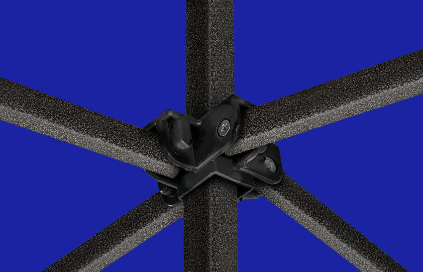 Pavillonkonstruktion Profile metalowe (30x30, 25x25, 23x12 mm), malowane przemysłowo farbą odporną na korozję. Profile łączone za pomocą mocnych plastikowych łączników