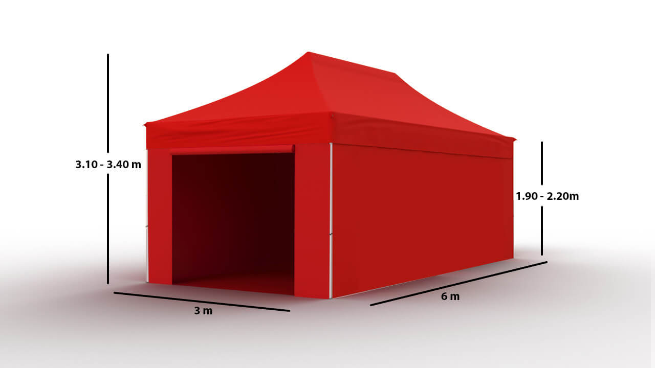 Namiot handlowy - ekspresowy, stalowy, 3x6 czerwony Zeltpro PROFRAME