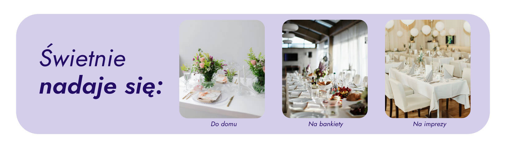 | Tkanina obrusa | Obrusy wykonane są z jednego kawałka materiału, dzięki czemu nie mają szwów |
