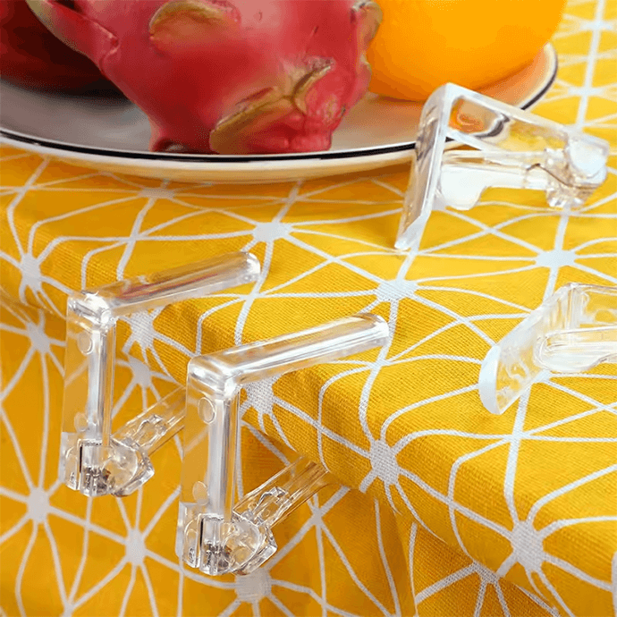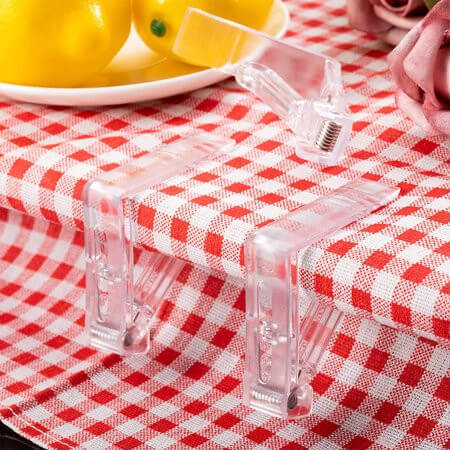 Wysokiej jakości, wytrzymałe klipsy do obrusów. Klipsy mają uniwersalny rozmiar, dzięki czemu pasują do większości stołów. Zestaw –10 szt.