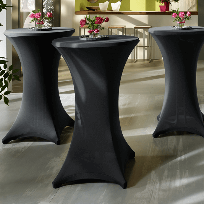 Elastyczne pokrowce na stół są świetnym wyborem, jeśli chcesz stworzyć uroczystą, elegancką i schludną atmosferę. Dzięki swoim elastycznym właściwościom pokrowce idealnie dopasowują się do stołu i nie wymagają prasowania. Po położeniu pokrowca na stoliku barowym, elastyczny pokrowiec rozciąga się, a wszystkie zagniecenia znikają, dlatego jest on łatwy w użytkowaniu i bardzo popularny zarówno w domu, jak i na imprezach, w hotelach, na weselach i w restauracjach. Elastyczne pokrowce na stół często wykorzystuje się także w celu zabezpieczenia składanego stolika barowego przed zarysowaniami, zalaniem i innymi uszkodzeniami.