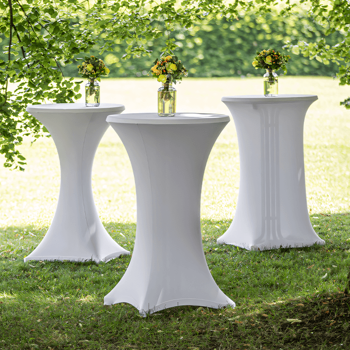 Elastyczne pokrowce na stół są świetnym wyborem, jeśli chcesz stworzyć uroczystą, elegancką i schludną atmosferę. Dzięki swoim elastycznym właściwościom pokrowce idealnie dopasowują się do stołu i nie wymagają prasowania. Po położeniu pokrowca na stoliku barowym, elastyczny pokrowiec rozciąga się, a wszystkie zagniecenia znikają, dlatego jest on łatwy w użytkowaniu i bardzo popularny zarówno w domu, jak i na imprezach, w hotelach, na weselach i w restauracjach. Elastyczne pokrowce na stół często wykorzystuje się także w celu zabezpieczenia składanego stolika barowego przed zarysowaniami, zalaniem i innymi uszkodzeniami.