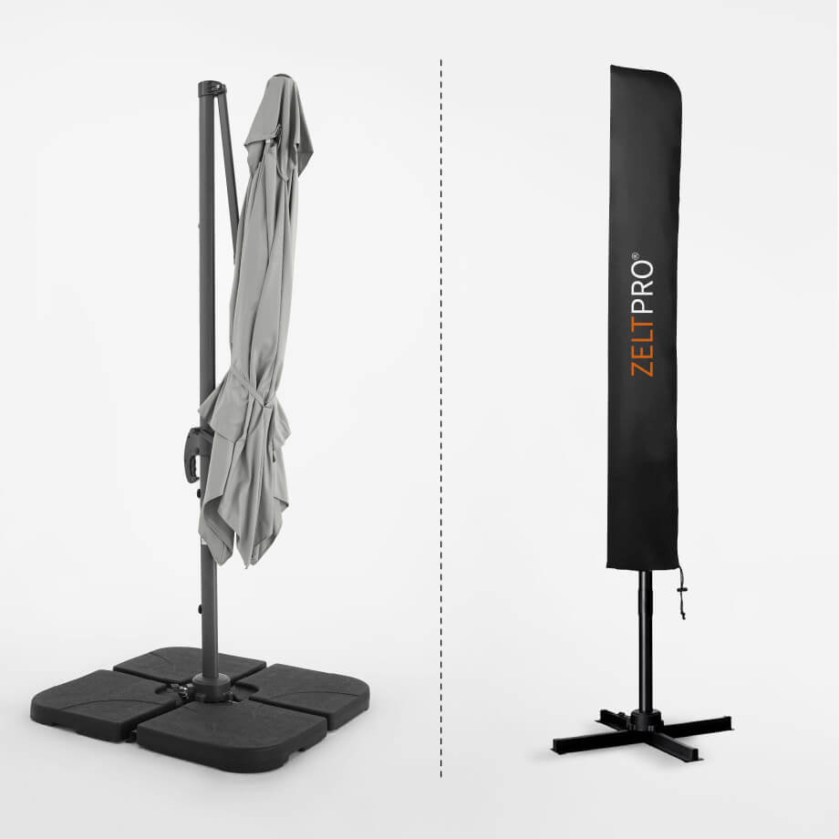 Zestaw parasolowy Konstrukcja parasola, czasza, instrukcja, metalowa podstawa krzyżowa, dodatkowy obciążnik Solid (do 150 kg)