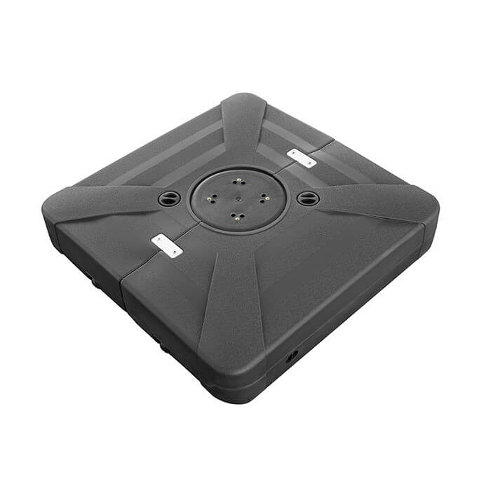 - Podczas montażu parasola należy zadbać o jego zamocowanie. Można to zrobić, umieszczając specjalny ciężarek lub mocując go do istniejącej podstawy (drewniany taras / asfalt itp.).