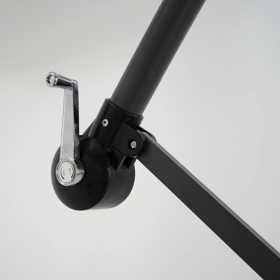 • Wygodne otwieranie i zamykanie z korbką, którą można łatwo obracać, aby dostosować napięcie parasola.