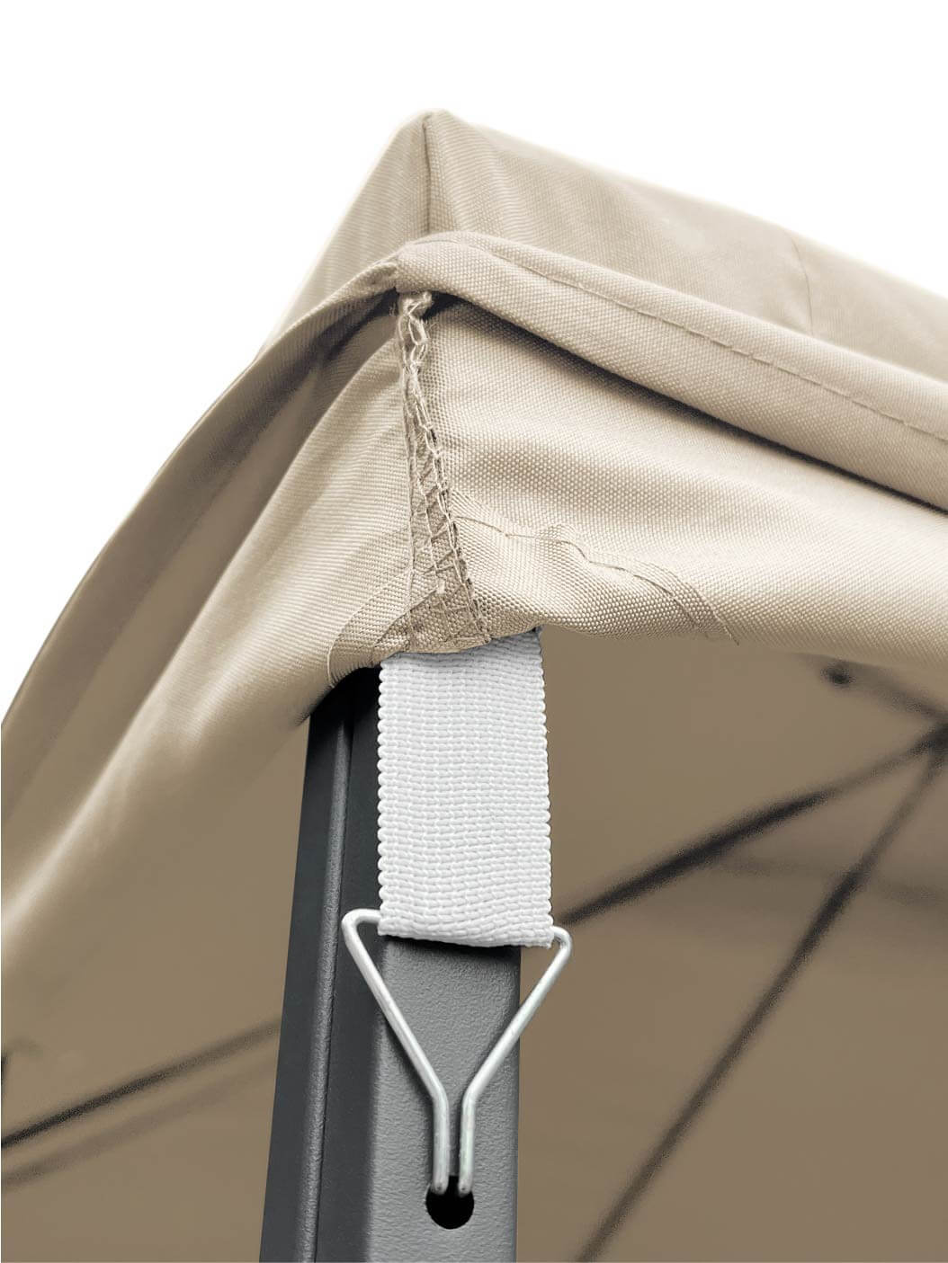 - Zamki błyskawiczne i paski w ścianach – umożliwia otwieranie i zamykanie altany w zależności od potrzeb.