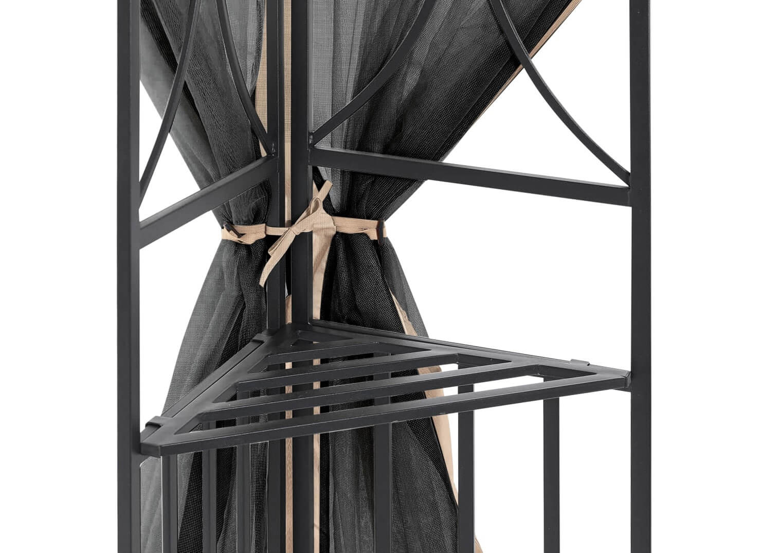 - Dodatkowe półki wbudowane w boki altany stanowią świetne miejsce na rośliny, świeczniki czy inne dekoracje, które sprawią, że wnętrze altany stanie się jeszcze bardziej przytulne i estetyczne.