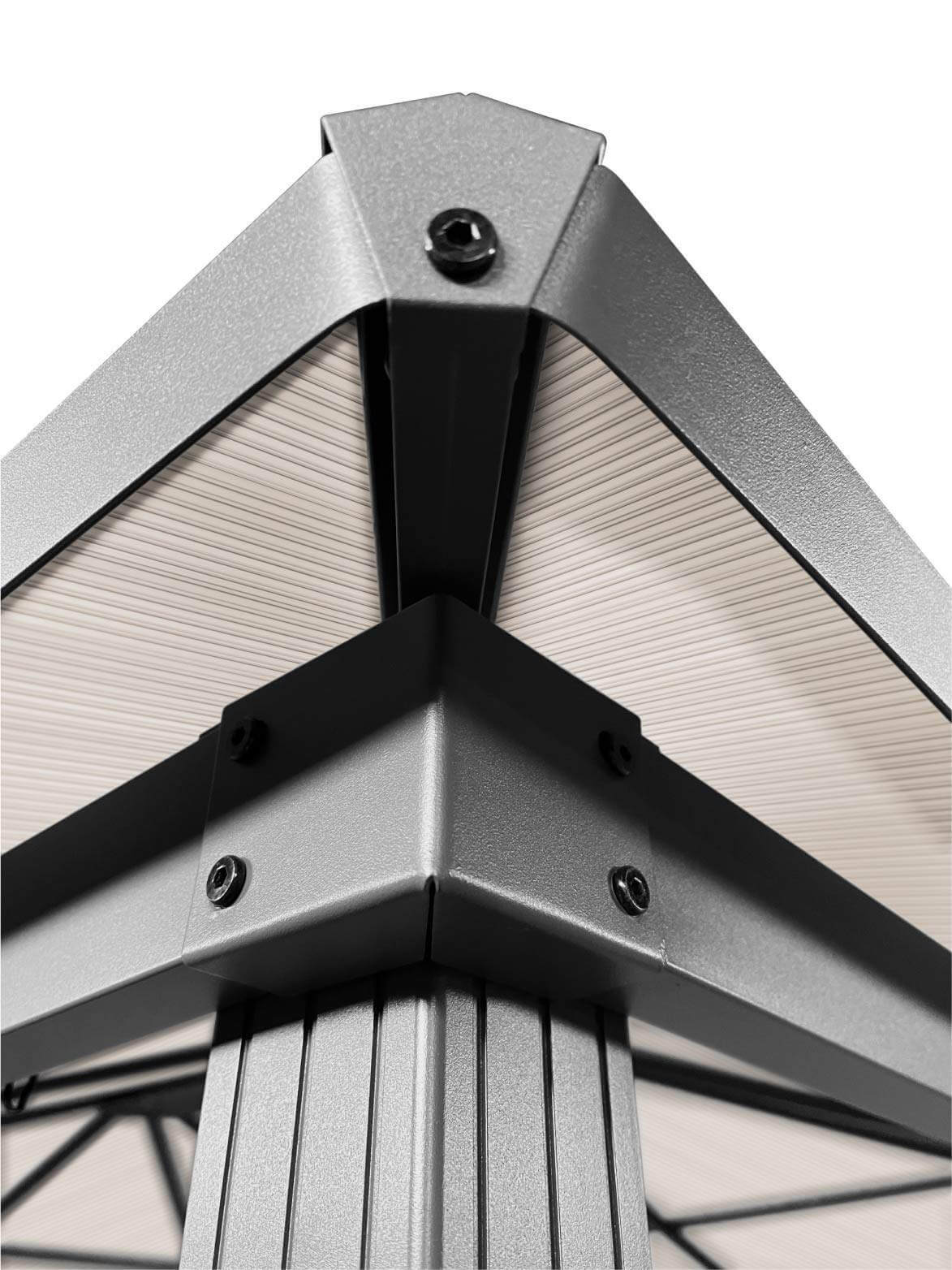 Konstrukcja Aluminiowy stelaż z dachem z poliwęglanu