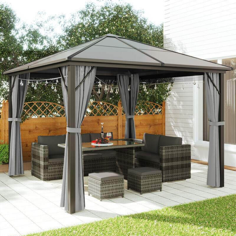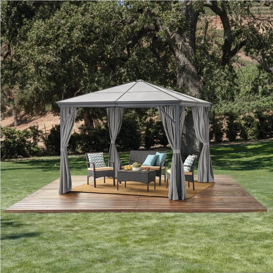 Od weekendowych śniadań po długie letnie wieczory, altana Deluxe stanie się Twoim pokojem na świeżym powietrzu. Twardy dach chroni przed deszczem i upałem, zasłony zapewniają prywatność, a solidna konstrukcja zapewni ochronę przed zmiennymi warunkami pogodowymi.
