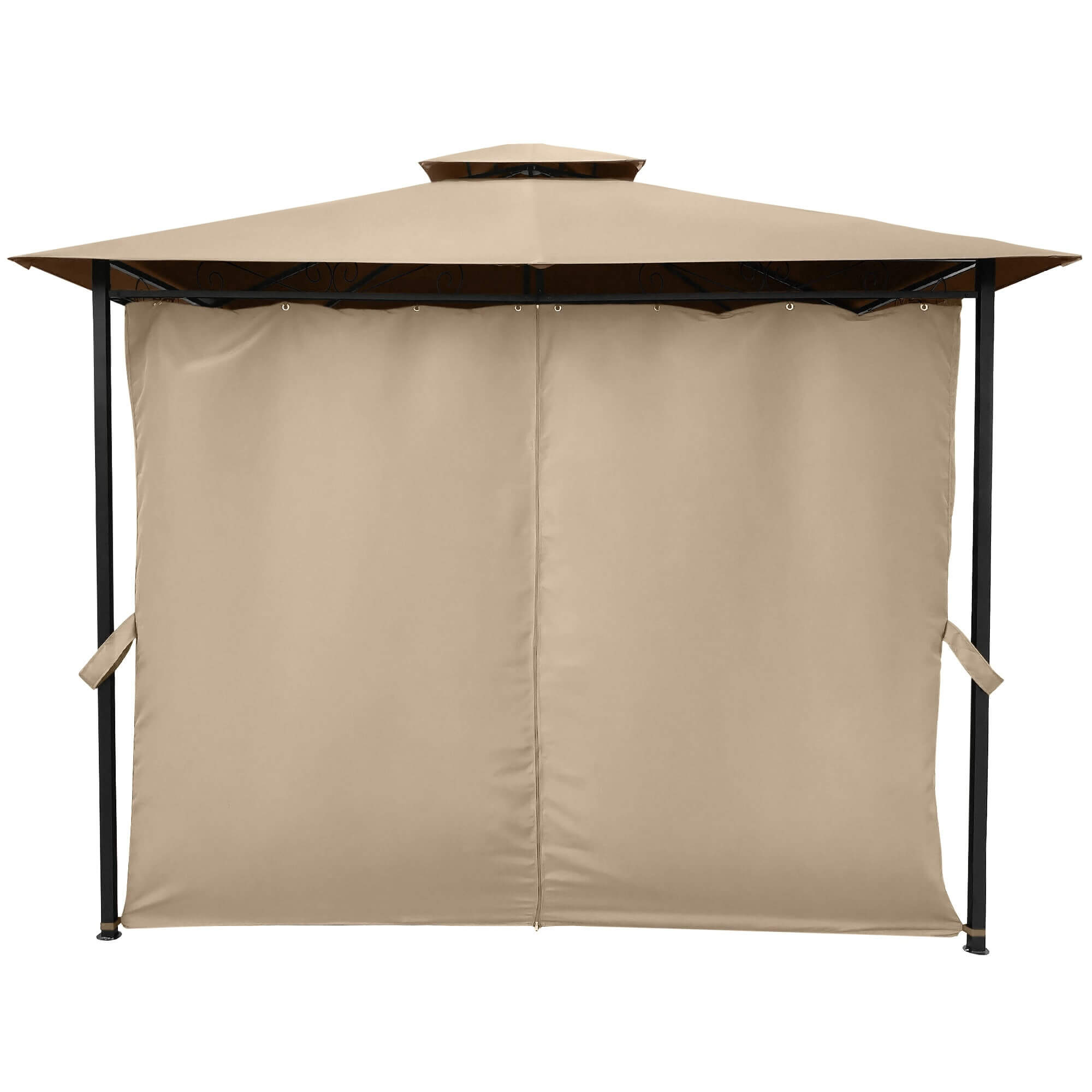 - Ściany altany są wyposażone w paski, które można wykorzystać do uzyskania schludnego wyglądu, gdy ściany altany są otwarte.